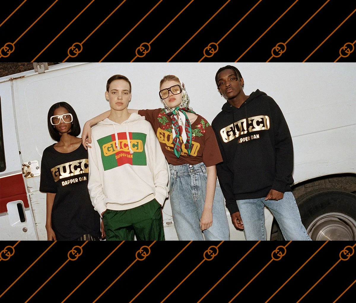 The collection of ready-to-wear and accessories takes its cue from the Dapper Dan archive created with the House’s refined materials. Featuring a new yellow Gucci logo, the pieces were shot by Ari Marcopoulos on young faces from Harlem. Exploring the synergy of design between Dapper Dan and creative director Alessandro Michele, the new collection of ready-to-wear and accessories features tracksuits in luxurious fabrics, denim with late 80s washes and fits and GG canvas jacquard jackets. - Gucci.com
